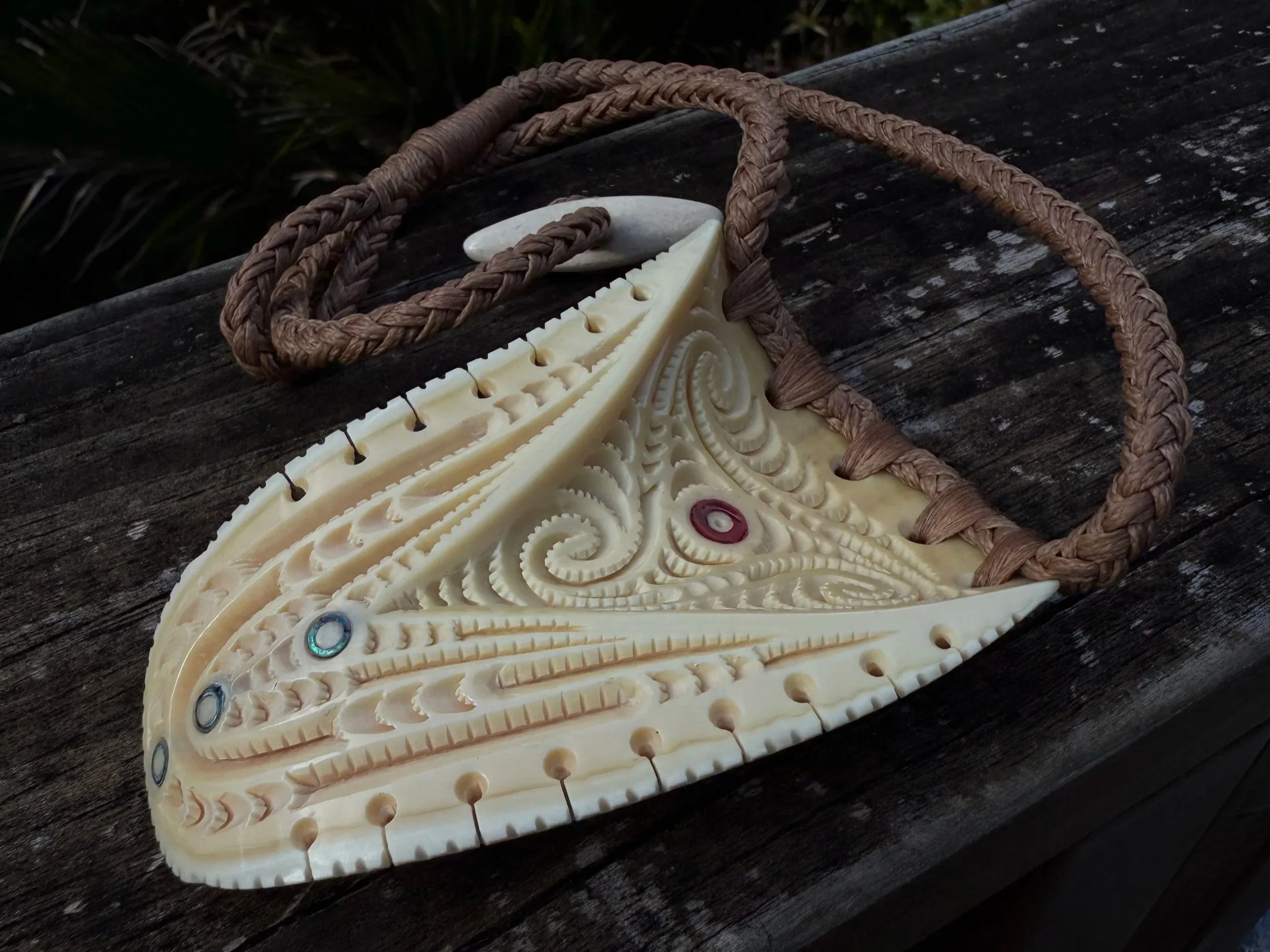 Rei puta - traditional Māori sperm whale tooth pendant. Carved by Tristan Marler (Manawa Tapu) in 2025.